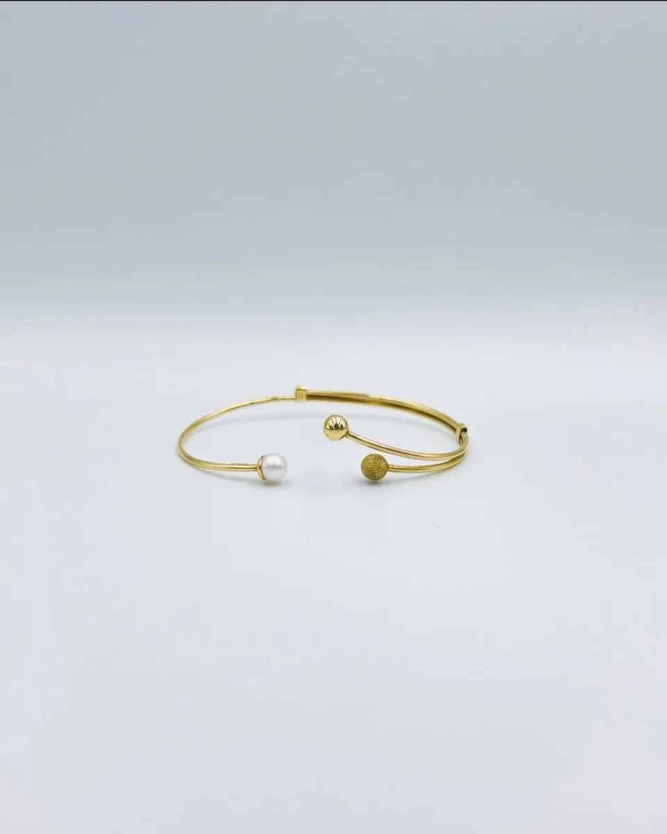 Ανακαλύψτε τη διαχρονική κομψότητα με αυτή την εύκαμπτη ανοιχτή χειροπέδα με μαργαριτάρι 14Κ, ένα κόσμημα που συνδυάζει κομψό design, φινέτσα και πολυτελή λεπτομέρεια. Το διακριτικό μαργαριτάρι στο κέντρο προσδίδει μια απαλή, κλασική λάμψη που αναδεικνύει την κομψότητα κάθε εμφάνισης.