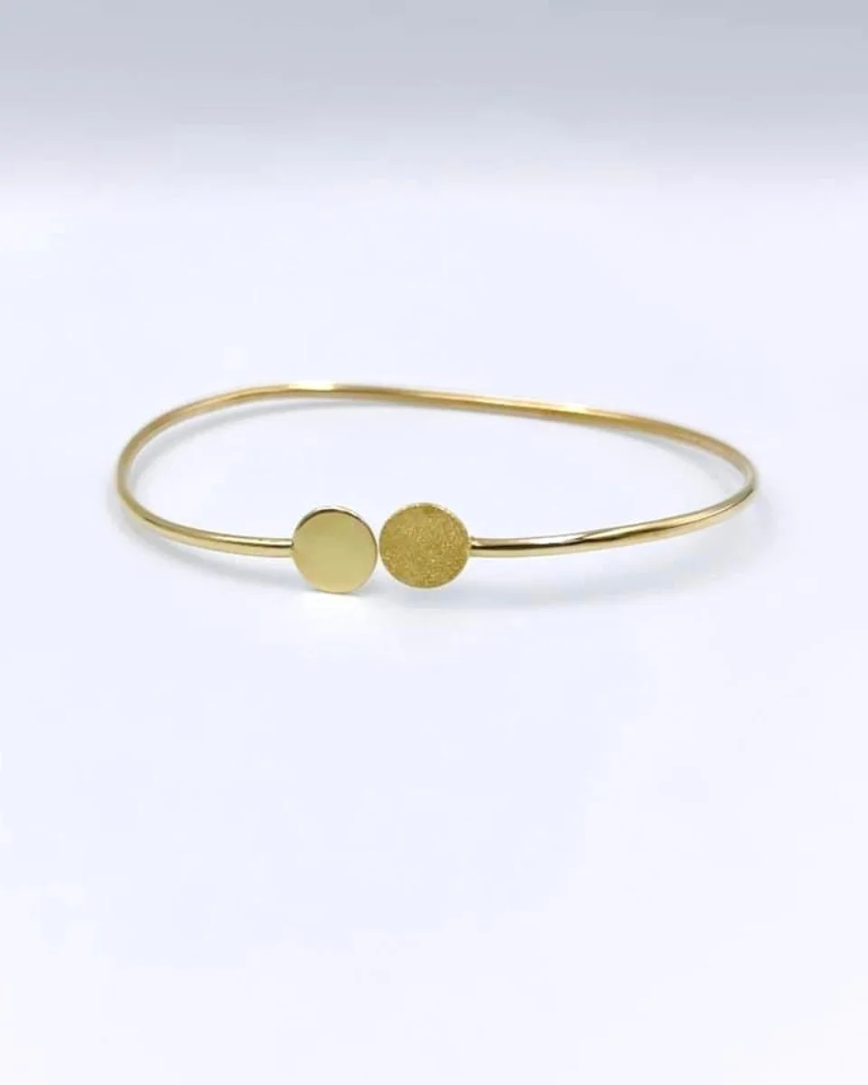 Ανακαλύψτε την απλότητα που μαγνητίζει με αυτή την εύκαμπτη χρυσή ανοικτή χειροπέδα 14Κ, ένα κόσμημα που συνδυάζει μίνιμαλ design και διαχρονική κομψότητα. Το ιδιαίτερο διπλό φινίρισμα – λουστρέ και μάτ δημιουργεί ένα μοντέρνο παιχνίδι υφών, χαρίζοντας βάθος και λεπτομέρεια στην επιφάνειά της.