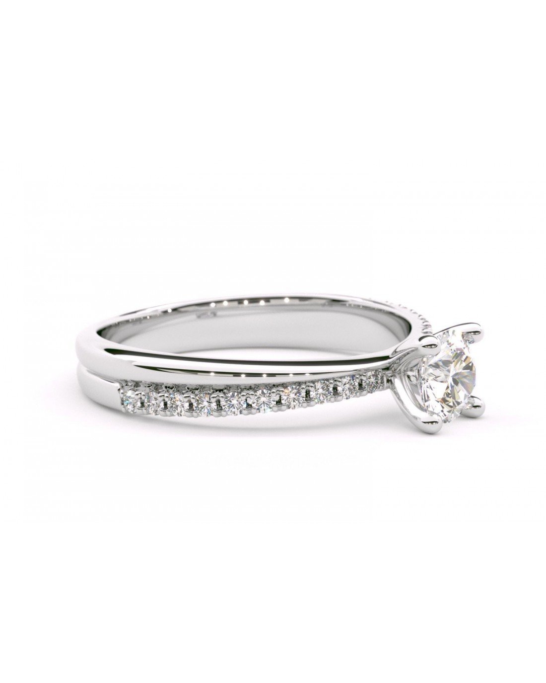 Μονόπετρο δαχτυλίδι λευκόχρυσο με πλαϊνές πέτρες ζιργκόν