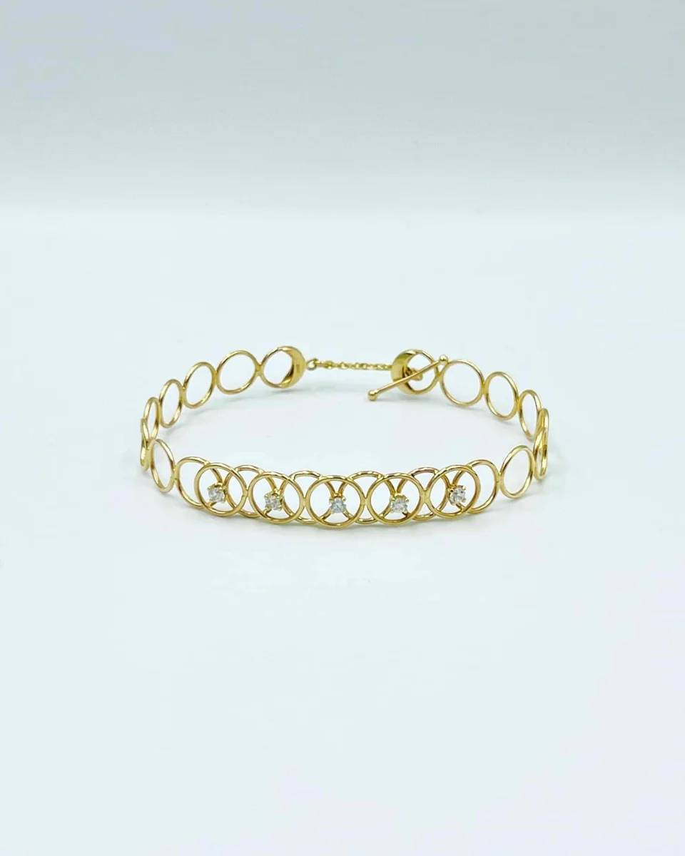 Χρυσή Πλεκτή Χειροποίητη Χειροπέδα με Κρίκους και Ζιργόν