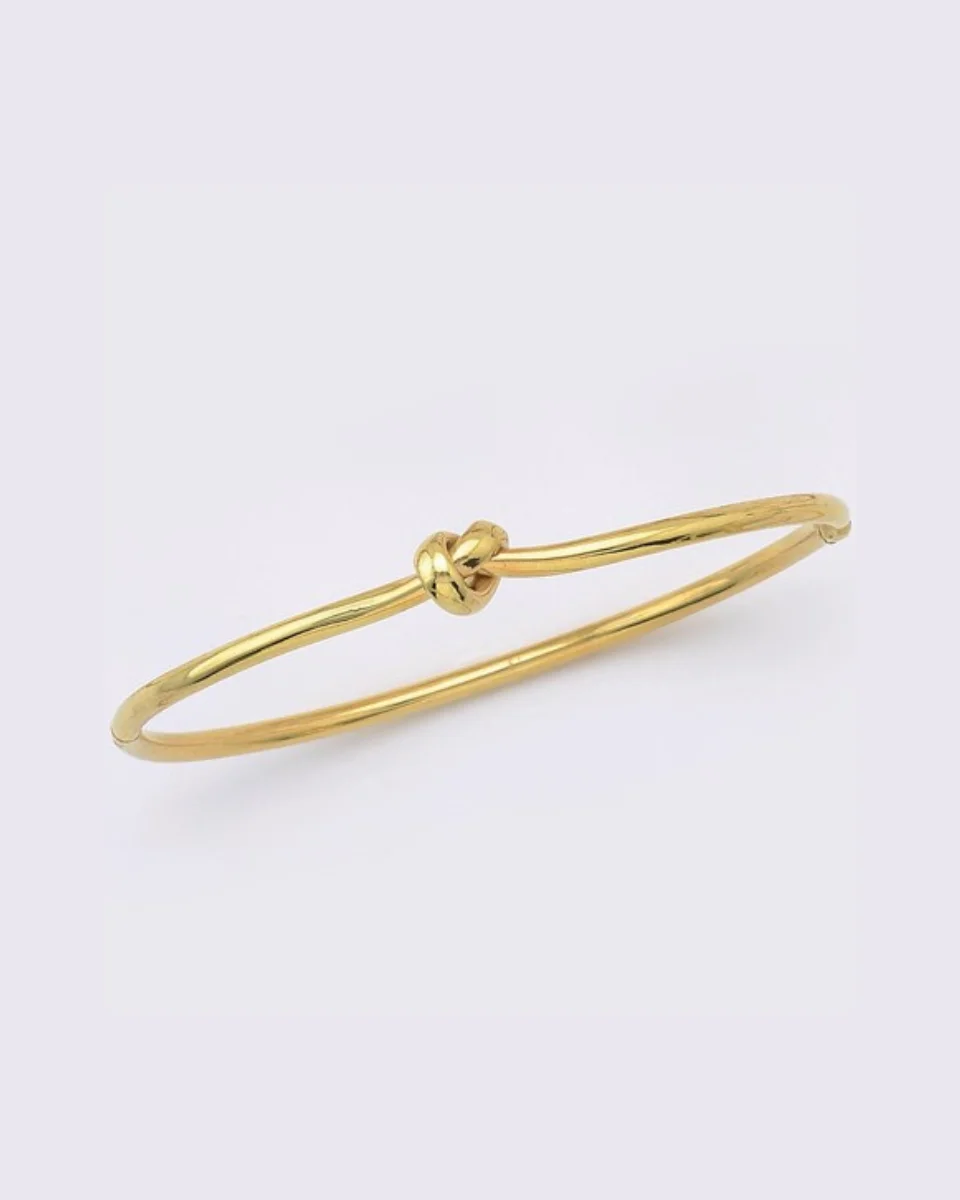 Αναδείξτε την κομψότητα με αυτή την χρυσή χειροπέδα 14Κ με κόμπο, ένα κόσμημα που παντρεύει minimal design με μοντέρνα αισθητική. Ο διακριτικός κόμπος στο κέντρο προσδίδει χαρακτήρα και μοναδικότητα, μετατρέποντας την απλή χειροπέδα σε ένα statement κομμάτι.