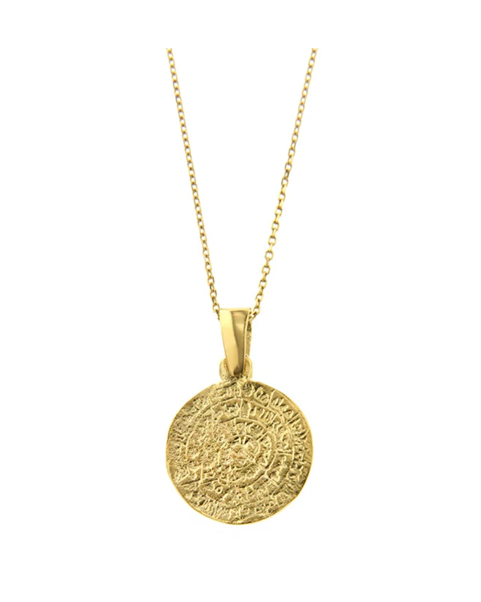 Ένα κόσμημα εμπνευσμένο από την ιστορία και τον πολιτισμό. Ο χρυσός Δίσκος της Φαιστού διπλής όψεως 9Κ αποτυπώνει με λεπτομέρεια το εμβληματικό μινωικό σύμβολο, συνδυάζοντας αρχαιοελληνική κληρονομιά με σύγχρονη κομψότητα.