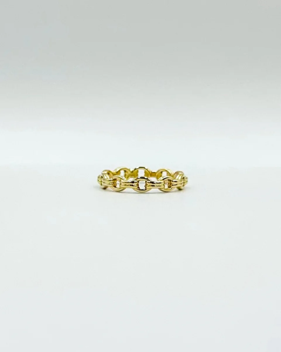 Αναδείξτε το μοντέρνο στυλ με αυτό το χρυσό δαχτυλίδι Κ14 σε σχέδιο αλυσίδας, ένα κόσμημα που παντρεύει minimal αισθητική με δυναμικό χαρακτήρα. Το ιδιαίτερο αλυσιδωτό σχέδιο χαρίζει κίνηση και υφή, δημιουργώντας μια διακριτικά εντυπωσιακή εμφάνιση που ξεχωρίζει σε κάθε λεπτομέρεια.
