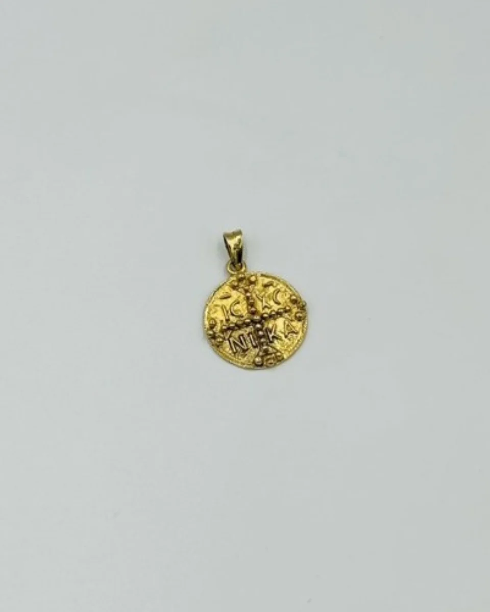 Ένα επιβλητικό χρυσό Κωνσταντινάτο 14Κ διπλής όψεως, σχεδιασμένο για όσους αναζητούν ένα κόσμημα με ουσία και παρουσία. Το κλασικό σύμβολο αποδίδεται με καθαρές γραμμές και ισορροπημένη γεωμετρία, ενώ η δυνατότητα διπλής όψης προσφέρει ευελιξία και διαχρονικό χαρακτήρα.