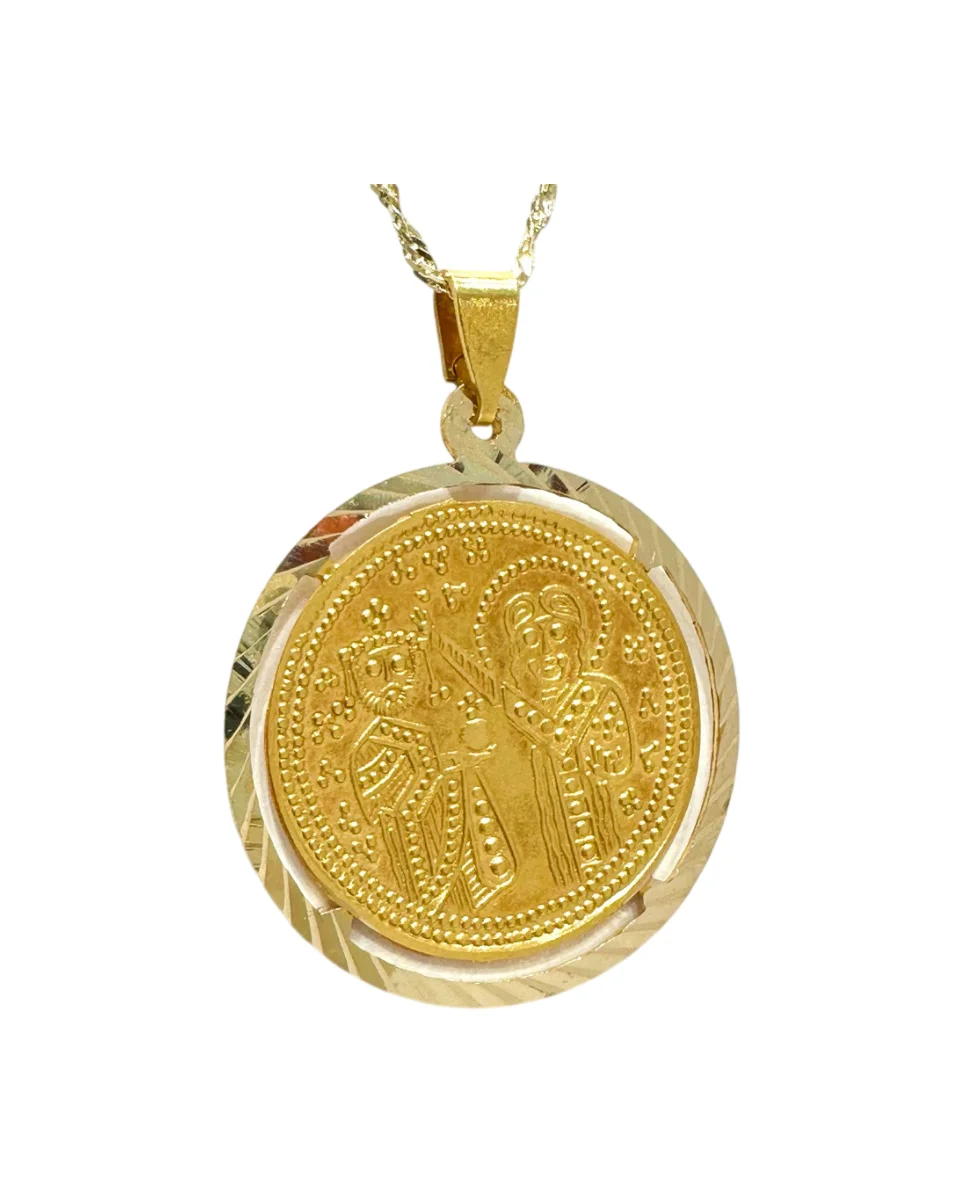 Αναδείξτε τη διαχρονική κομψότητα με αυτό το χρυσό Κωνσταντινάτο 14Κ με πλαίσιο διπλής όψεως, ένα κόσμημα που συνδυάζει θρησκευτική συμβολικότητα με εκλεπτυσμένη σχεδίαση. Το διπλής όψεως πλαίσιο προσφέρει μοναδικότητα, επιτρέποντας να φοριέται ανάλογα με τη διάθεση ή την εμφάνιση, ενώ η καθαρή γραμμή του Κωνσταντινάτου αποπνέει διαχρονική κομψότητα.