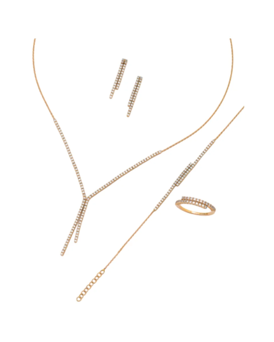 Το ριβιέρα σχέδιο χαρίζει μια μοναδική συμμετρία και λάμψη, ιδανική για τη μέρα του γάμου ή ειδικές περιστάσεις, συνδυάζοντας διακριτικά τη διαχρονικότητα με ένα μοντέρνο touch. Το σετ είναι διαθέσιμο σε ροζ χρυσό, ενώ υπάρχει δυνατότητα παραγγελίας σε λευκό ή κίτρινο χρυσό, προσαρμοζόμενο έτσι στο προσωπικό σας στυλ και στις προτιμήσεις σας.